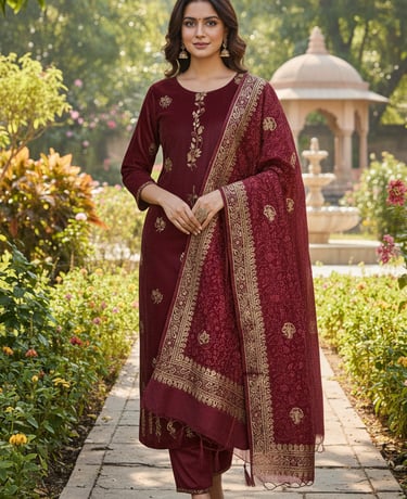Explore our unique collection of handcrafted suits and sarees inspired by Indian tradition and artistry.