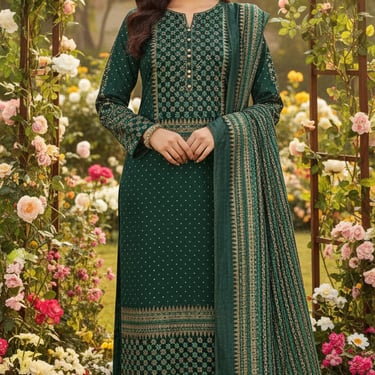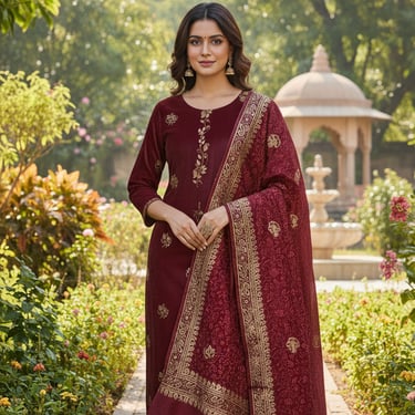 Explore our handcrafted Pure Crepe, Cottons and Chanderi suit collections.