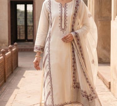 Explore our unique collection of handcrafted suits and sarees inspired by Indian tradition and artistry.
