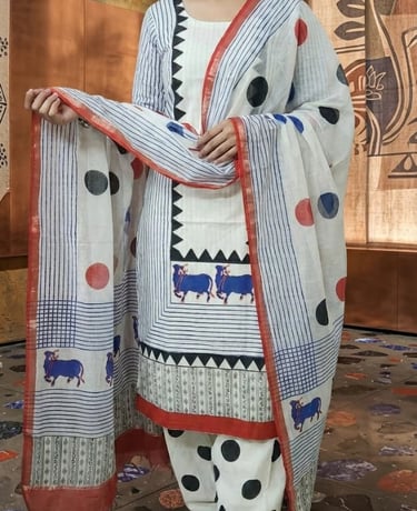 Discover our handcrafted fashion rooted in Indian tradition, featuring exquisite block-printed and brush-painted suits and sarees that embody timeless artistry and modern elegance. From our signature creations to custom designs tailored just for you, we bring your vision to life with the same dedication to detail and craftsmanship.