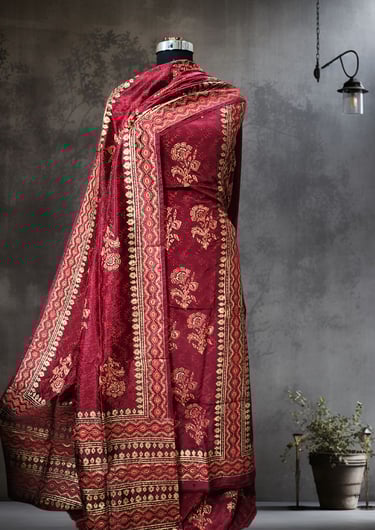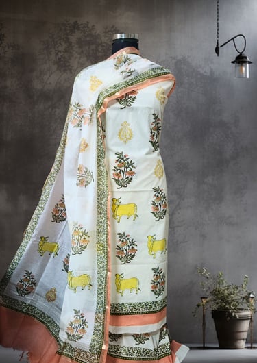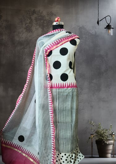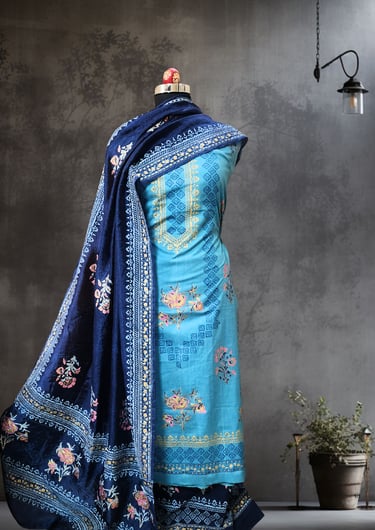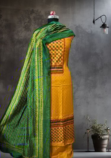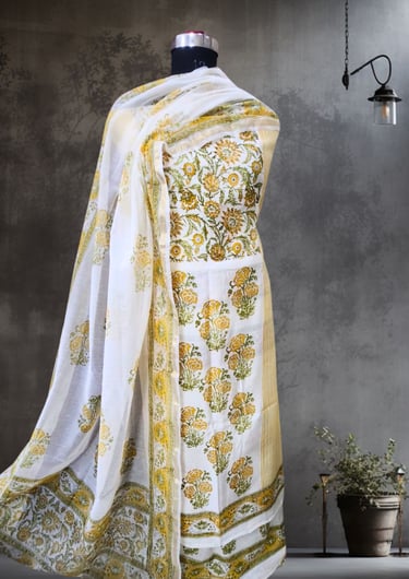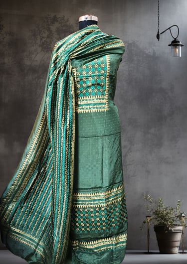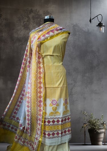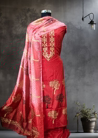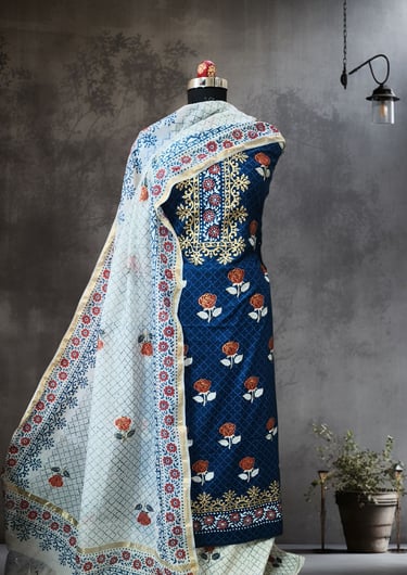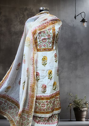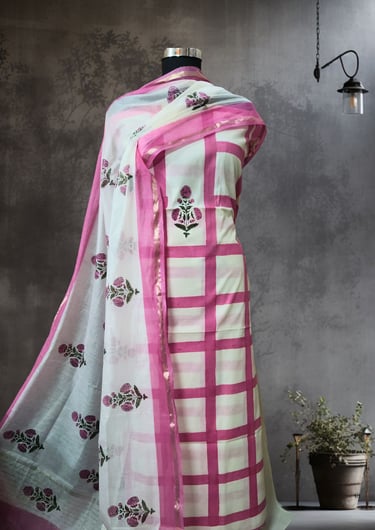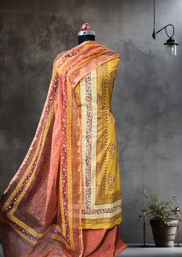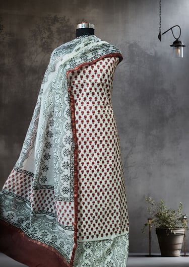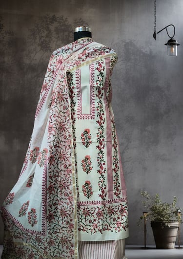 Explore our handcrafted Pure Crepe, Cottons and Chanderi suit collections.